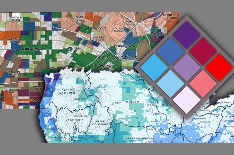Bivariate Farbschemata ermöglichen die gleichzeitige Visualisierung von zwei Variablen auf einer thematischen Karte. In diesem Beitrag zeigen wir Ihnen, wie solche Farbschemata aufgebaut werden und wie Farben gezielt eingesetzt werden, um Muster und Zusammenhänge sichtbar zu machen.