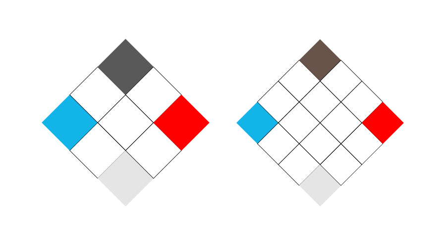 Das Farbschema ist als Raster aufgebaut, in der Regel mit drei oder vier Feldern pro Seite. Eine höhere Anzahl ist zwar möglich, jedoch wird es mit zunehmender Differenzierung schwieriger, klar unterscheidbare Farben zu erzeugen.