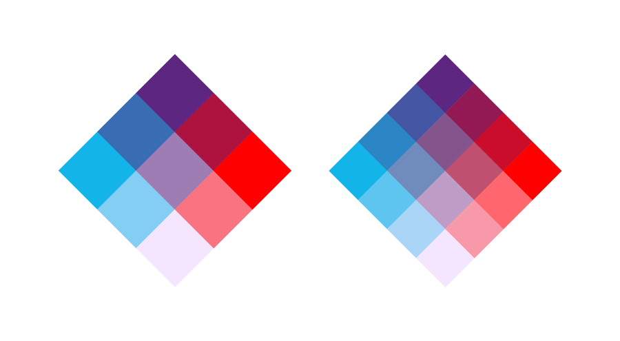Dabei ist keine exakt rechnerische Farbmischung erforderlich, wie die nachfolgenden Beispiele zeigen. Gegebenenfalls können Anpassungen vorgenommen werden; entscheidend ist jedoch, dass der visuelle Eindruck einer Farbmischung entsteht.